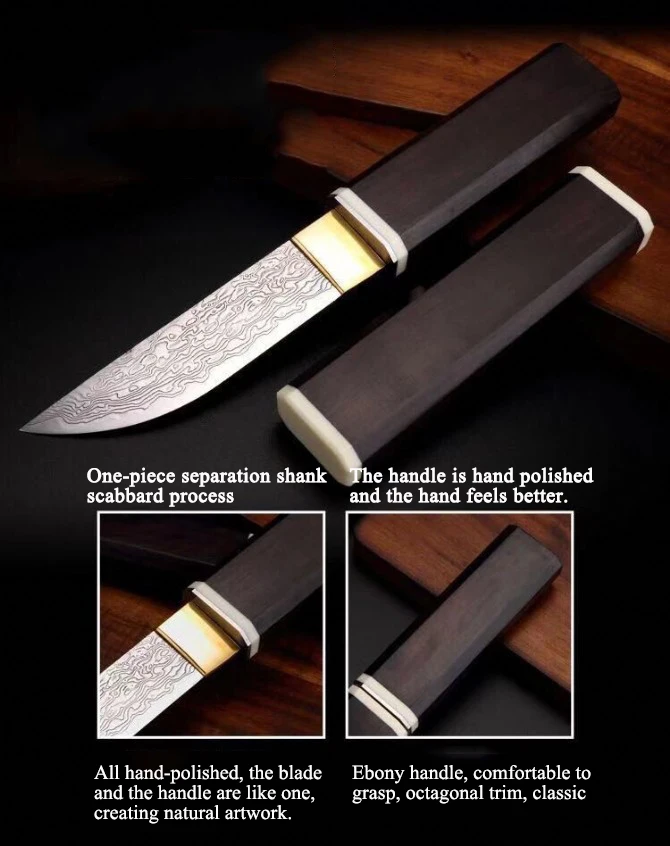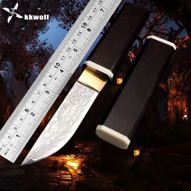 KKWOLF Damascus Steel Fixed Blade Knife Japanese Professional Samurai Knife Portable Outdoor Campin
